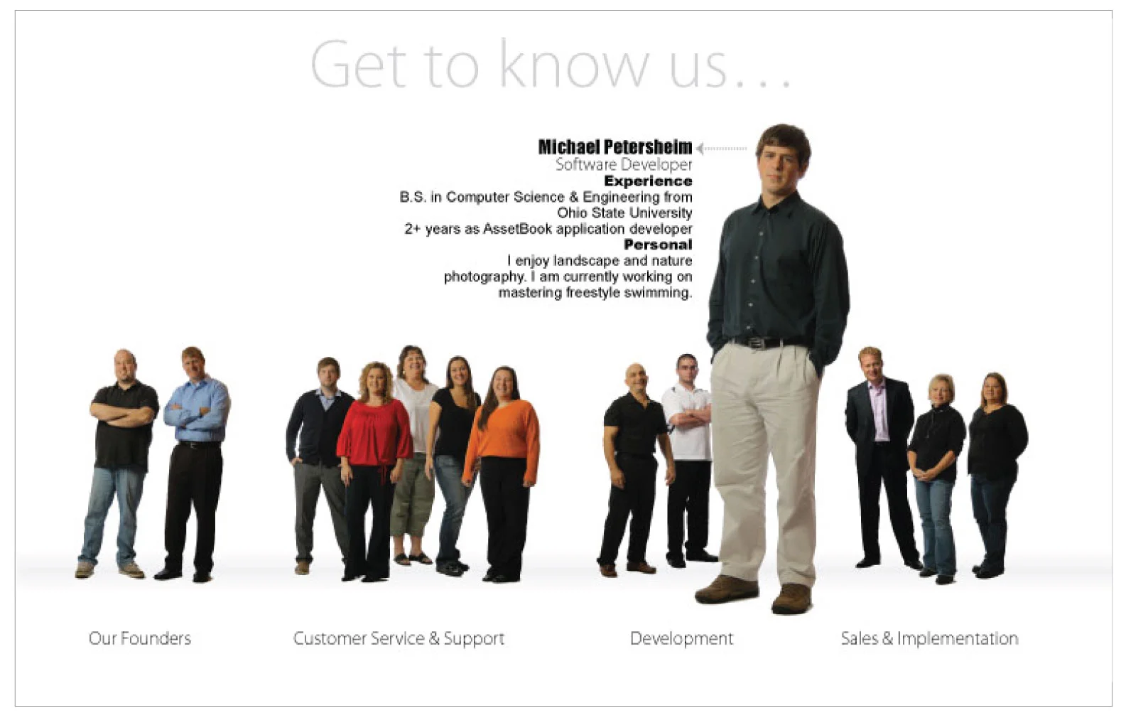 AssetBook | Online Employee Pages | Fish-eye effect [figure and bio pop up]